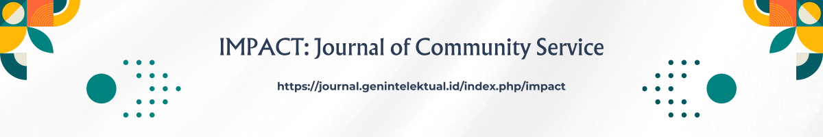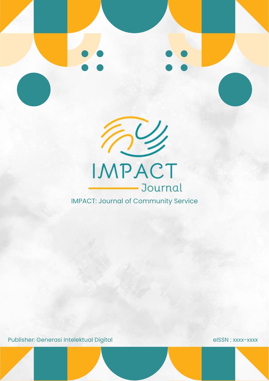 IMPACT: Journal of Community Service (e-ISSN: 3089-8153) is a journal of the results of community service activities that are open access, published by GEN ID. This journal is a double blind and peer-reviewed journal that publishes articles from Community Service (PKM) activities from various disciplines, it includes reports in the areas of Science, Education, Health, and Technology, with a focus on community empowerment.
